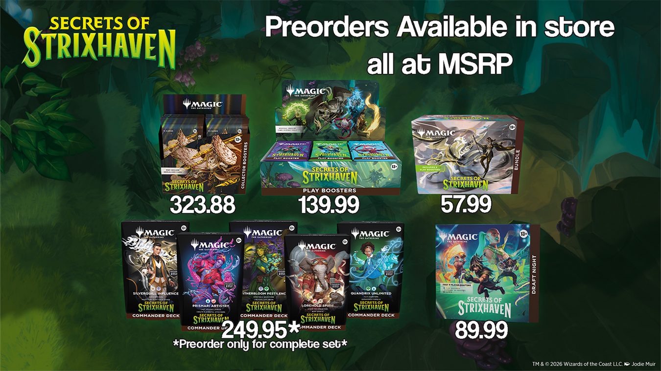 Friendly staff with a large selection board games, trading cards and other hobby essentials