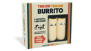 Place the pair of throwable Burritos on the table and deal out the cards. Earn points by collecting three of a kind. Play Burrito Cards and force your friends to battle. Duel to determine the winner. Duck, dodge and dive squishy, airborne burritos or get hit and receive a Burrito Bruise!